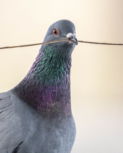 Lasst uns auch direkt über das Ästchen im Schnabel sprechen: Man sagt unseren Stadttauben auch nach, dass sie „schlechte Nestbauer*innen“ sind... Lasst uns lieber sagen, sie sind „extrem effiziente Minimalisten“. Das macht vor ihrem evolutionären Hintergrund auch Sinn: Stadttauben stammen von domestizierten Felsentauben ab und bauen daher extrem einfache Nester – oft bestehen diese nur aus ein paar losen Zweigen. Ihre Vorfahren nisteten auf Felsvorsprüngen und brauchten dort kein aufwändiges Nest, da die Umgebung bereits stabil genug war. Dieses Verhalten haben sie bis heute beibehalten.